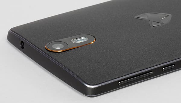 Модуль камеры объединен в единый блок со вспышкой, они прикрыты защитным стеклом и заключены в овальный металлизированный ободок оранжевого цвета. Здесь вообще все элементы оформлены в сочетании с рыжим, поскольку в названии марки присутствует «лисья» тема. Вспышка имеет лишь один сегмент, но светит крупный светодиод достаточно ярко, его можно использовать в качестве фонарика.
