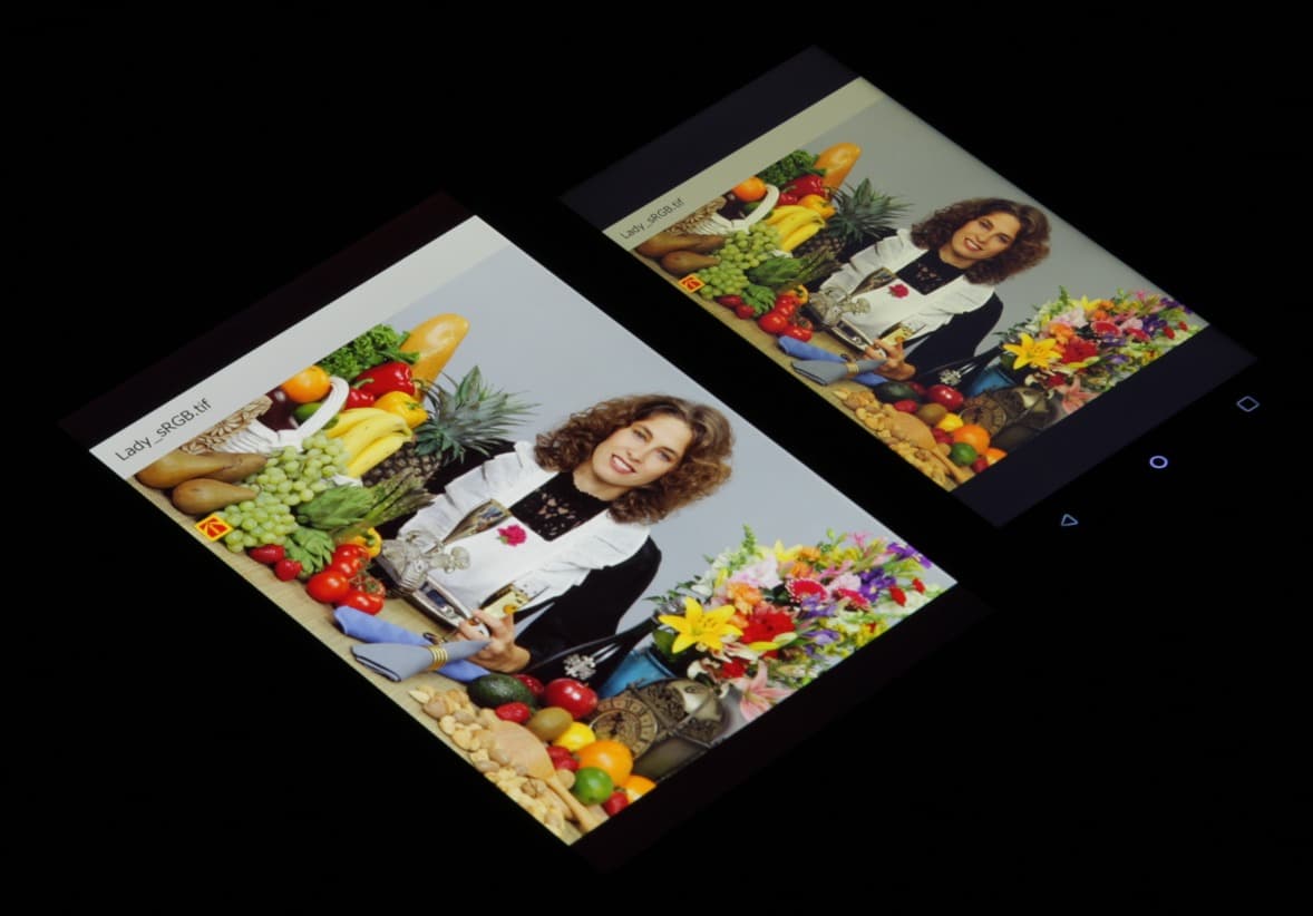 Видно, что цвета не сильно изменились у обоих экранов, но у Wileyfox Storm контраст уменьшился в большей степени из-за сильного высветления черного и большего падения яркости. И белое поле: