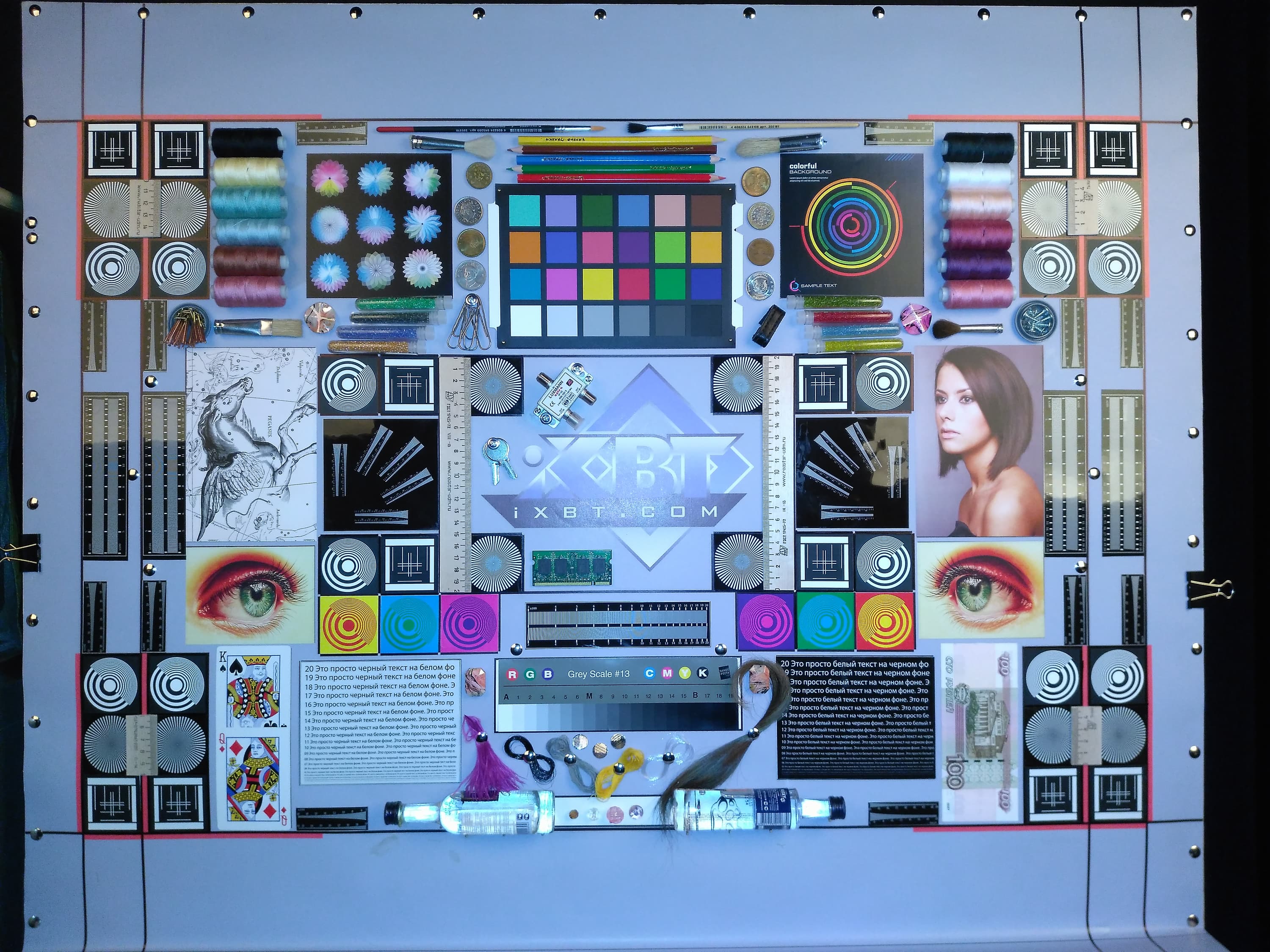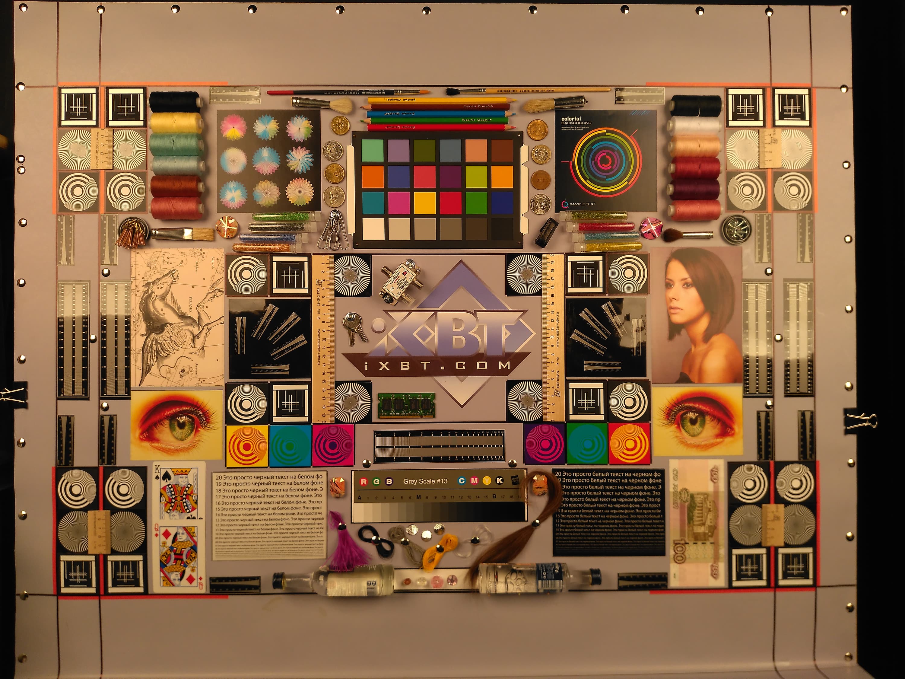 Отметим некоторую видимую неравномерность яркости и цветового тона белого поля. И тестовая картинка:
