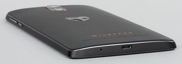 Интерфейсные разъемы разместили по обоим торцам устройства: на верхнем — аудиовыход диаметром 3,5 мм для наушников, на нижнем — разъем Micro-USB. Здесь все как у младшей модели, но, в отличие от нее, Wileyfox Storm поддерживает подключение внешних устройств к порту USB в режиме OTG.