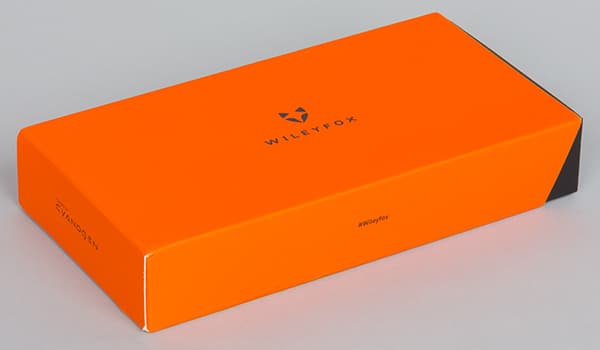 Смартфон Wileyfox Storm поставляется в точно такой же по форме и внешнему оформлению упаковке, как и модель Wileyfox Swift — за исключением размеров. Здесь эта плоская яркая коробочка с оранжевой обложкой имеет чуть больший размер, поскольку сам аппарат крупнее.