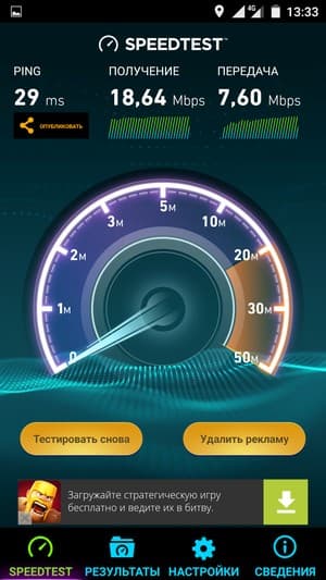 Смартфон стандартно работает в современных сетях 2G GSM и 3G WCDMA, а также имеется поддержка четырех диапазонов сетей четвертого поколения LTE Cat.4 (FDD-LTE: 800/900/1800/2600 МГц), то есть герой обзора может функционировать в трех наиболее распространенных у отечественных операторов диапазонах (B3, B7 и B20). На практике с SIM-картами операторов Билайн и МТС в московском регионе смартфон уверенно регистрировался и работал в сетях 4G. Качество приема сигнала нареканий не вызывает, аппарат уверенно поддерживает связь в помещениях и не теряет сигнал в зонах неуверенного приема.