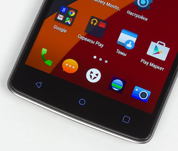 Лицевая часть корпуса прикрыта защитным стеклом Corning Gorilla Glass 3. Стекло плоское, выраженных бортиков не имеет, однако пластиковая прокладка вокруг стекла совсем немного приподнимает экран над твердой поверхностью, и этого вполне хватает для того, чтобы аппарат не скользил по лакированному столику, если он вдруг лежит экраном вниз.