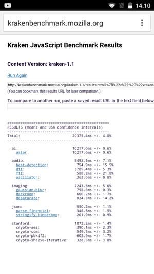 Что касается бенчмарков для оценки скорости движка javascript, то стоит всегда делать скидку на то, что в них результаты существенно зависят от браузера, в котором запускаются, так что сравнение может быть истинно корректным только на одинаковых ОС и браузерах, а такая возможность имеется при тестировании не всегда. В случае с ОС Android мы всегда стараемся использовать Google Chrome.