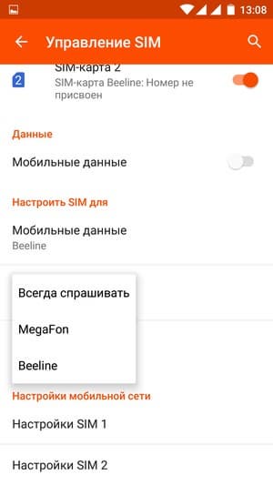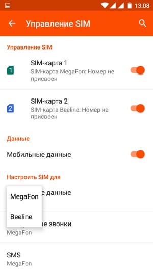 Смартфон поддерживает работу с двумя SIM-картами. Работа с ними в меню организована на одной странице наглядно и интуитивно понятно. Любую из SIM-карт можно назначить основной для организации голосовых звонков, передачи данных и отправки SMS-сообщений; при наборе номера также можно выбрать желаемую карту соответствующими кнопками. С сетями 3G/4G может работать SIM-карта в любом слоте, но одновременно в этом режиме может функционировать лишь одна из них. Для смены назначений слотов карточки менять местами не требуется — это можно сделать прямо из меню телефона. Работа с двумя SIM-картами организована по стандарту Dual SIM Dual Standby, то есть радиомодуль здесь только один.