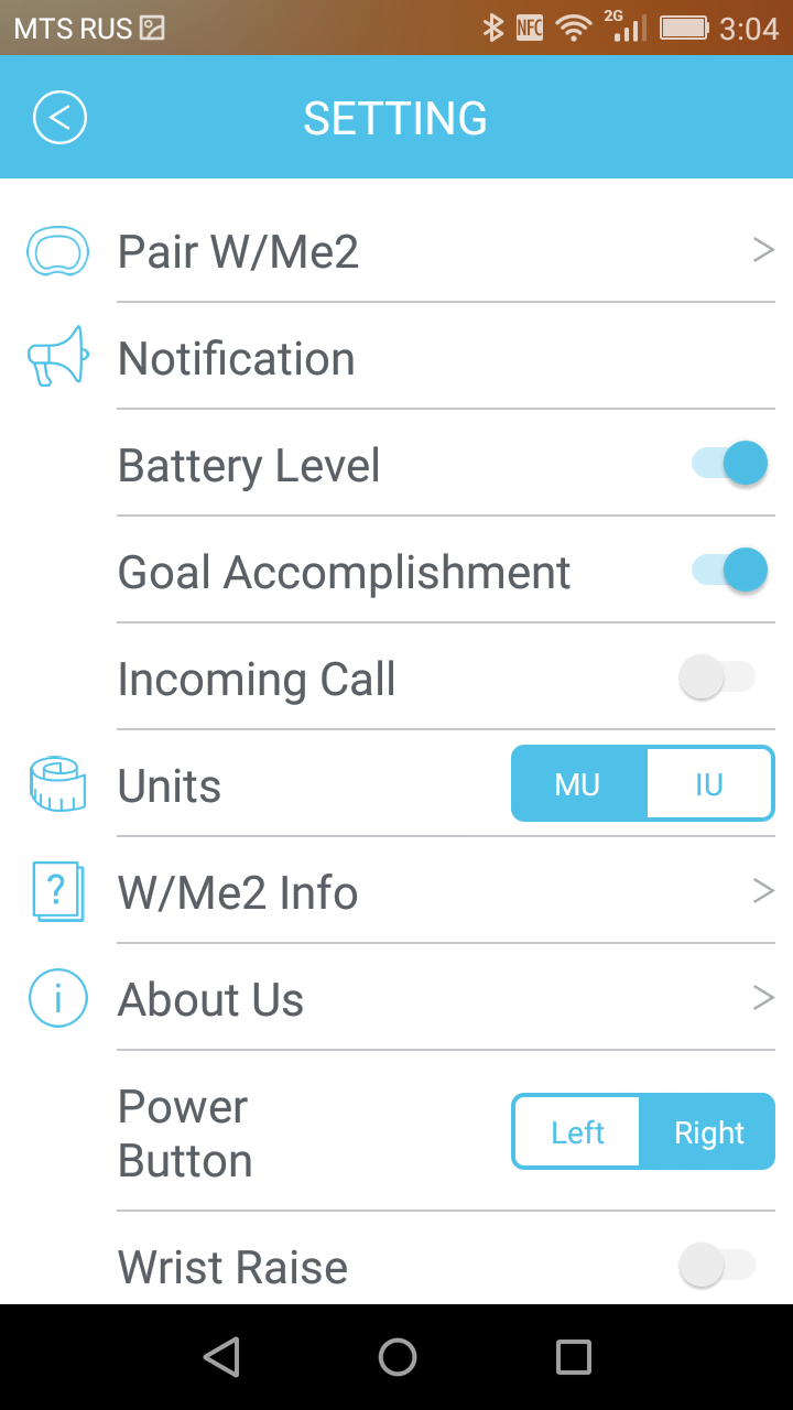 Последнее, о чем стоит сказать — это настройки. Здесь можно включить или отключить отображение времени при поднятии руки, поставить вибрацию браслета при входящем звонке, настроить некоторые параметры отображения информации.