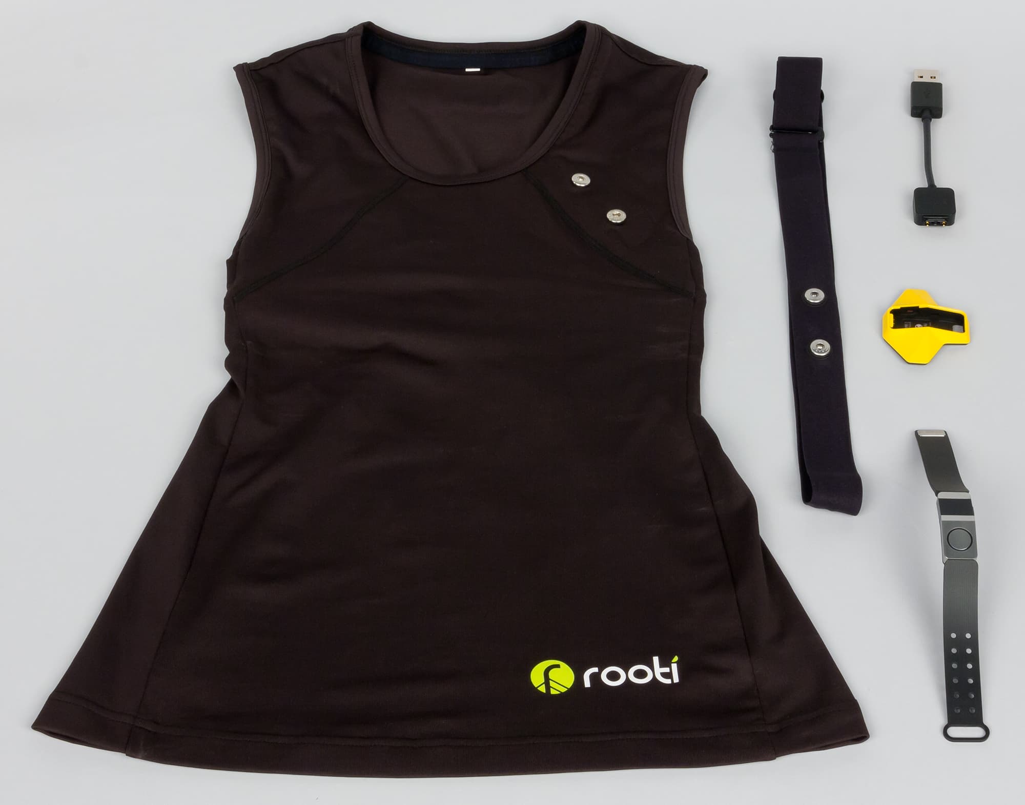 Итак, что же такого необычного предлагает Rooti Labs? Сообщается, что компания разработала технологию измерения электрической активности сердца, на основе которой можно узнать не только свой пульс (причем в виде полноценной электрокардиограммы), но и общее состояние вегетативной нервной системы, а также давление. При этом, обратим внимание, браслет не требует подсоединения манжеты, нагрудного ремня или каких-либо иных аксессуаров. Хотя в комплекте есть нагрудный ремень для занятий спортом и даже футболка с датчиками.
