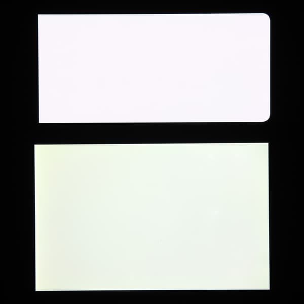 Экран характеризуется великолепными углами обзора. Правда, белый цвет при отклонении на большие углы приобретает легкий сине-зеленый оттенок, но черный цвет остается просто черным под любыми углами. Он настолько черный, что параметр контрастности в данном случае неприменим. Для сравнения приведем фотографии, на которых на экраны Xiaomi 11T Pro и Nexus 7 выведены одинаковые изображения, при этом яркость экранов изначально установлена примерно на 200 кд/м², а цветовой баланс на фотоаппарате принудительно переключен на 6500 К.