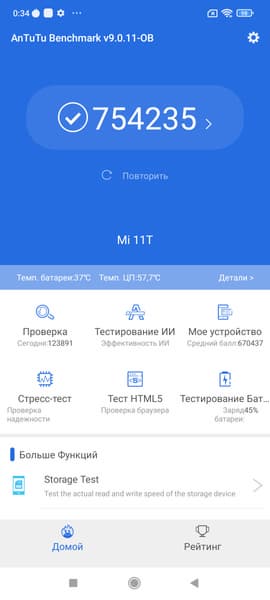 Xiaomi 11T Pro поставляется с ОС Android 11 и с фирменной оболочкой MIUI 12.5. К MIUI за последнее время накопилось немало претензий — как за хаотичность организации и тяжеловесность, так и за обилие навязчивой рекламы. Возможностей у интерфейса не больше, чем у смартфонов других марок, а вот сидеть и вычищать вручную придется изрядно. Навязчиво предлагаются и собственные сервисы: стоит только включить новый аппарат, как он начинает спамить всплывающими уведомлениями, предлагая очистить память и пр. Программный интерфейс MIUI смотрится не очень привлекательно на фоне добротного «железа», пора Xiaomi проводить серьезные реформы. Что ж, во всяком случае здесь есть официальный магазин приложений Google Play и сервисы Google.