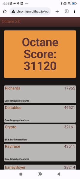 | Google Octane 2 (больше — лучше) | 31120 | 30849 | 36245 | 31919 | 7257 |