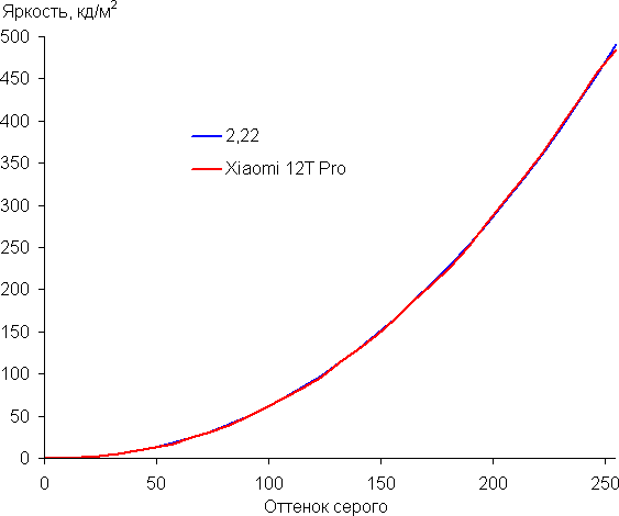 Напомним, что в случае OLED-экранов яркость фрагментов изображения динамично меняется в соответствии с характером выводимого изображения — немного уменьшается для светлых в целом изображений. В итоге полученная зависимость яркости от оттенка (гамма-кривая), скорее всего, не соответствует гамма-кривой статичного изображения, так как измерения проводились при последовательном выводе оттенков серого почти на весь экран.