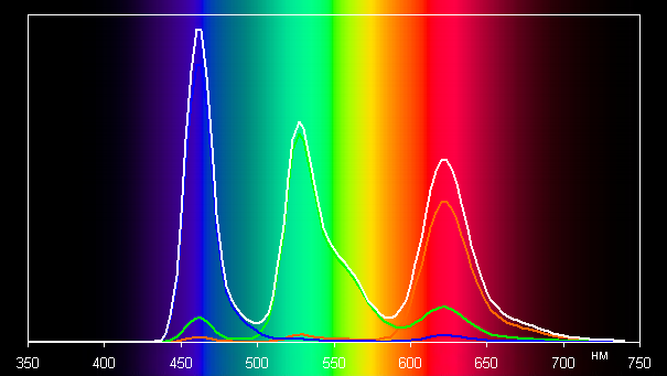 | Адаптивные цвета включена, галогеновая лампа накаливания (теплый свет — 2850 К) | 4740 | 4,9 |
