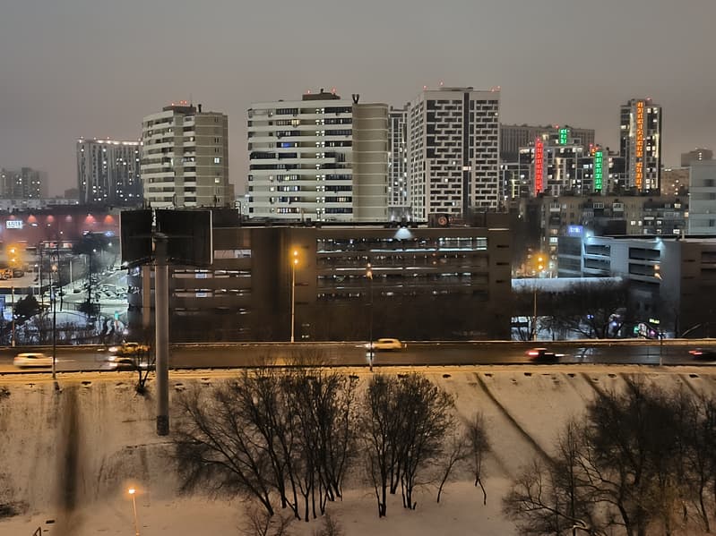 Ночной режим тоже великолепен: детализация уже не столь высока, но шумов нет, выдержка рассчитана хорошо, картинка не пересвечена, не превратилась в день, в целом снимки четкие при мягкой проработке источников освещения, с естественной цветопередачей. Конечно, это касается лишь работы основной камеры, а с широким углом и зумом в ночи делать нечего.