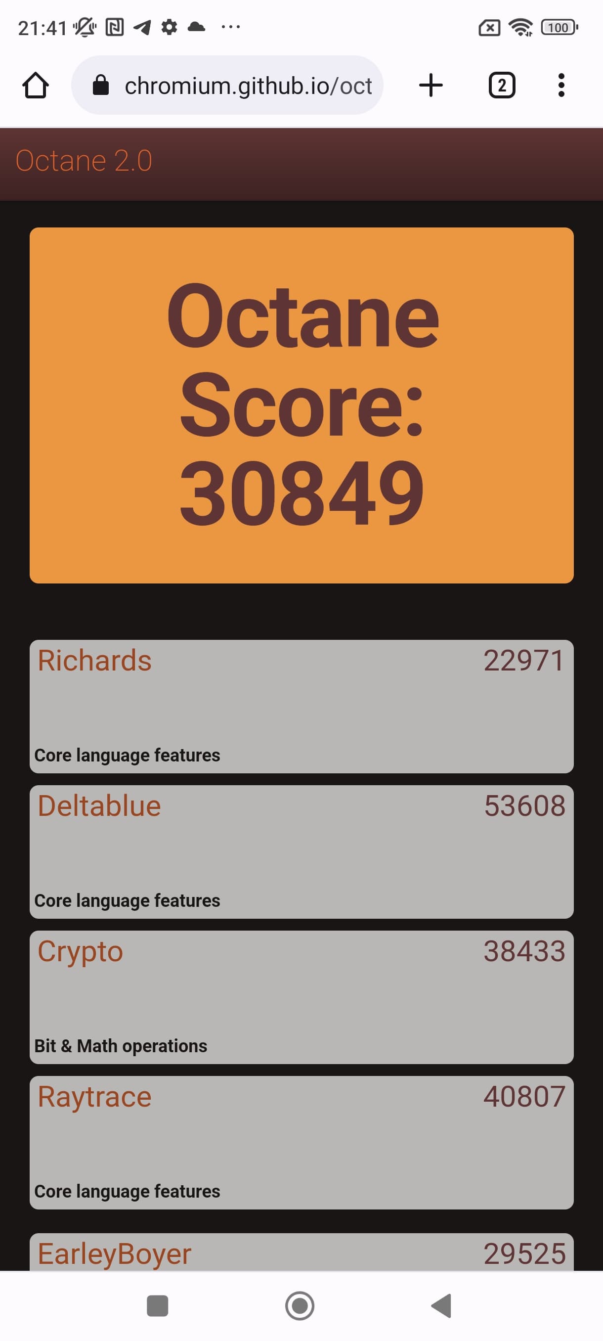 | Google Octane 2 (больше — лучше) | 30849 | 31120 | 36245 | 31919 | 7257 |
