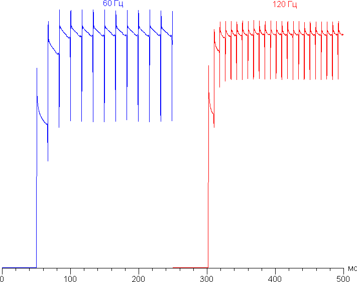 В режиме 120 Гц плавность прокрутки заметно повышается. Посмотрим, изменится ли при этом характер модуляции: