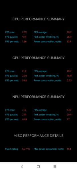 Тест на снижение производительности при нагреве мы проводим с помощью программы Burnout Benchmark, которая позволяет нагружать CPU, GPU и NPU: