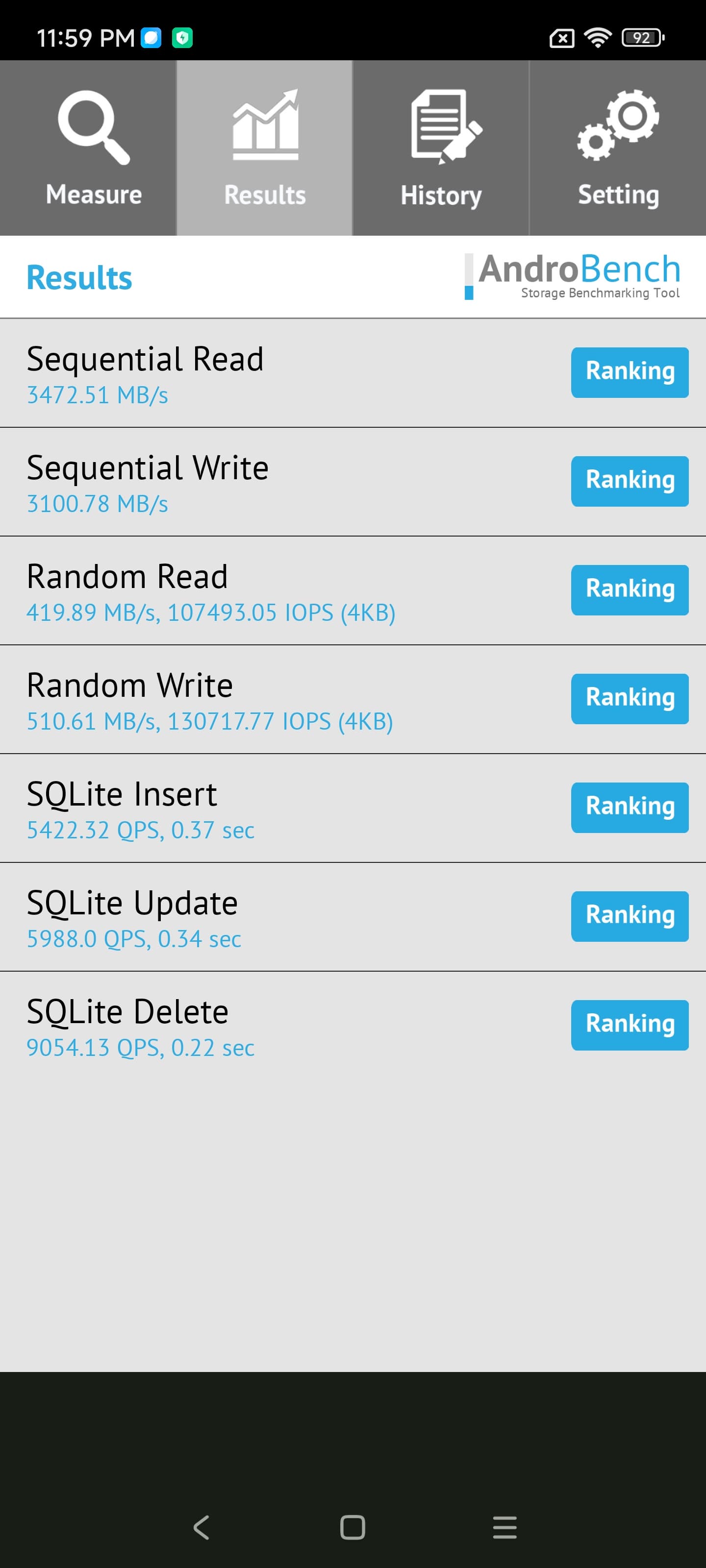 Результаты теста AndroBench на скорость работы с памятью:
