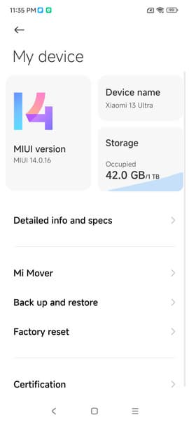 В качестве программной платформы Xiaomi 13 Ultra использует версию ОС Android 13 с собственной оболочкой. Тут надо отметить, что мы приобрели китайскую версию смартфона, которая работает на китайской прошивке MIUI 14. Русского языка и предустановленных сервисов Google в ней изначально нет, но можно доустановить фирменный магазин Google Play. Также очень много предустановленного софта, в том числе только с иероглифами. Впрочем, для любителей бренда Xiaomi и заказов из китайских онлайн-магазинов всё это не будет неожиданностью. Тем более, что можно приобрести и глобальную версию модели.