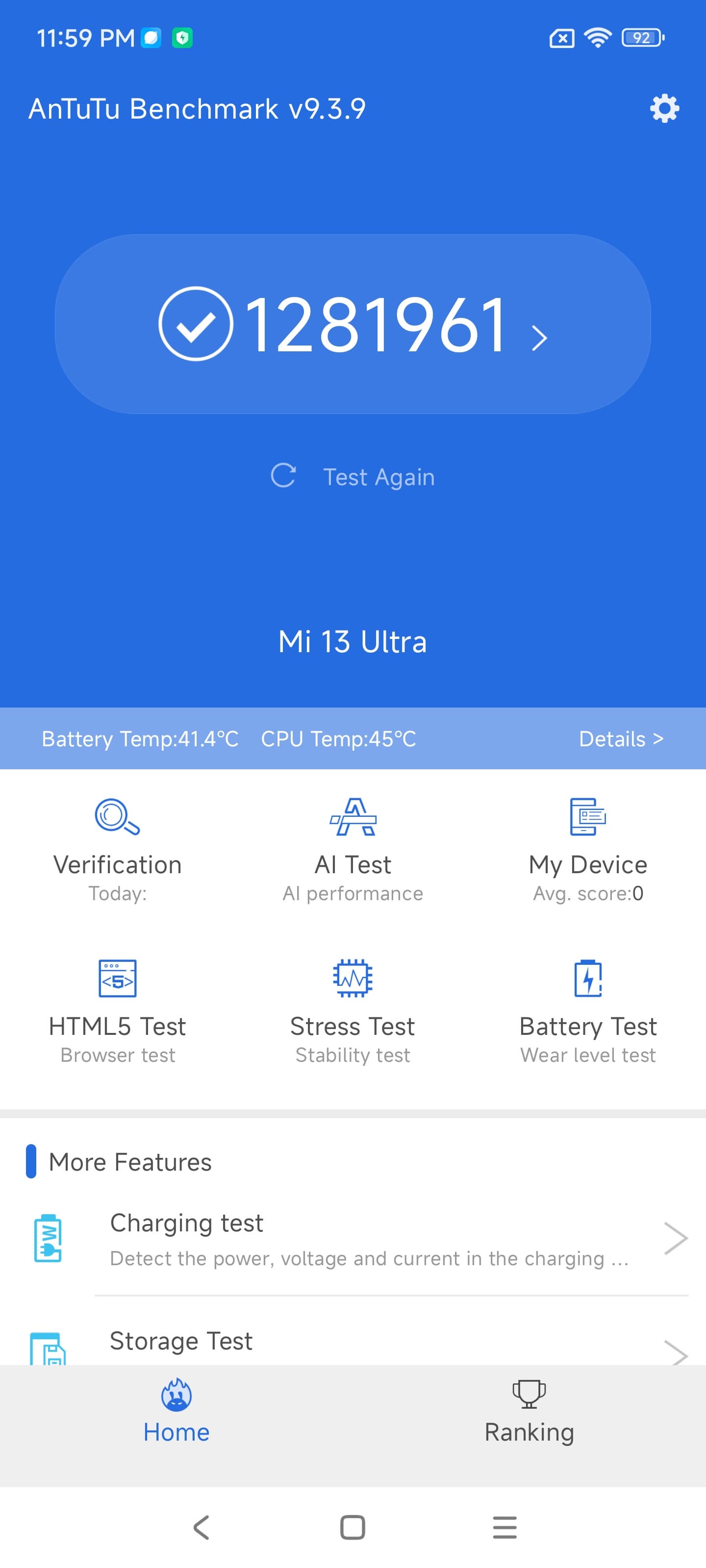 | AnTuTu (v9.x) (больше — лучше) | 1281961 | 1044654 | 1180538 | 1024226 | 815296 |