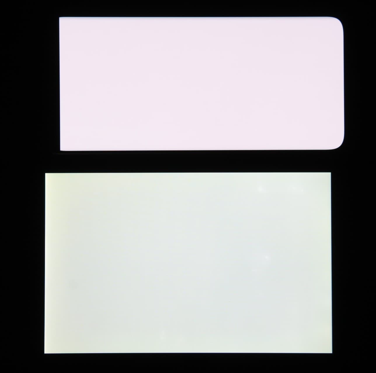 Отметим хорошую равномерность яркости и цветового тона белого поля (за исключением едва видимого затемнения и изменения оттенка к загнутым краям).