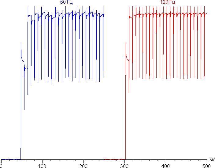 В режиме 120 Гц плавность прокрутки (списков в меню и т. д.) заметно повышается. Характер модуляции при этом не меняется, видимое мерцание отсутствует. Отметим, что частота обновления 120 Гц устанавливается, только если на экран выводится динамическое изображение.