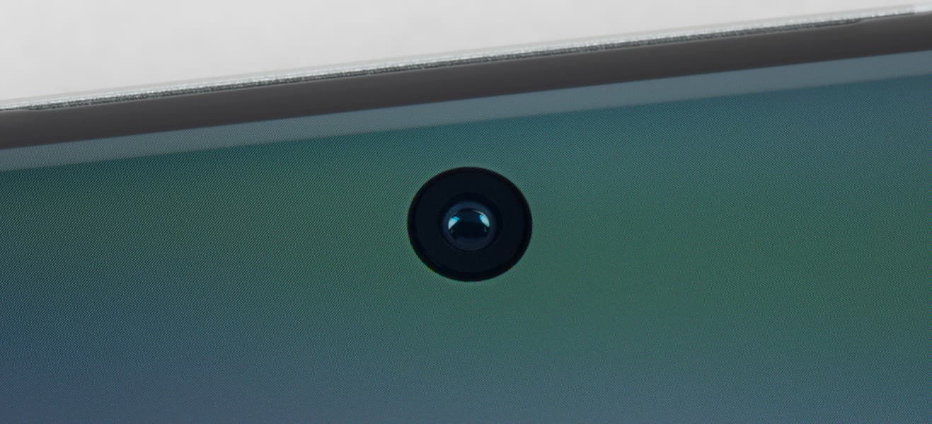 В верхней части экрана за отверстием в матрице круглой формы размещен объектив одиночной селфи-камеры.