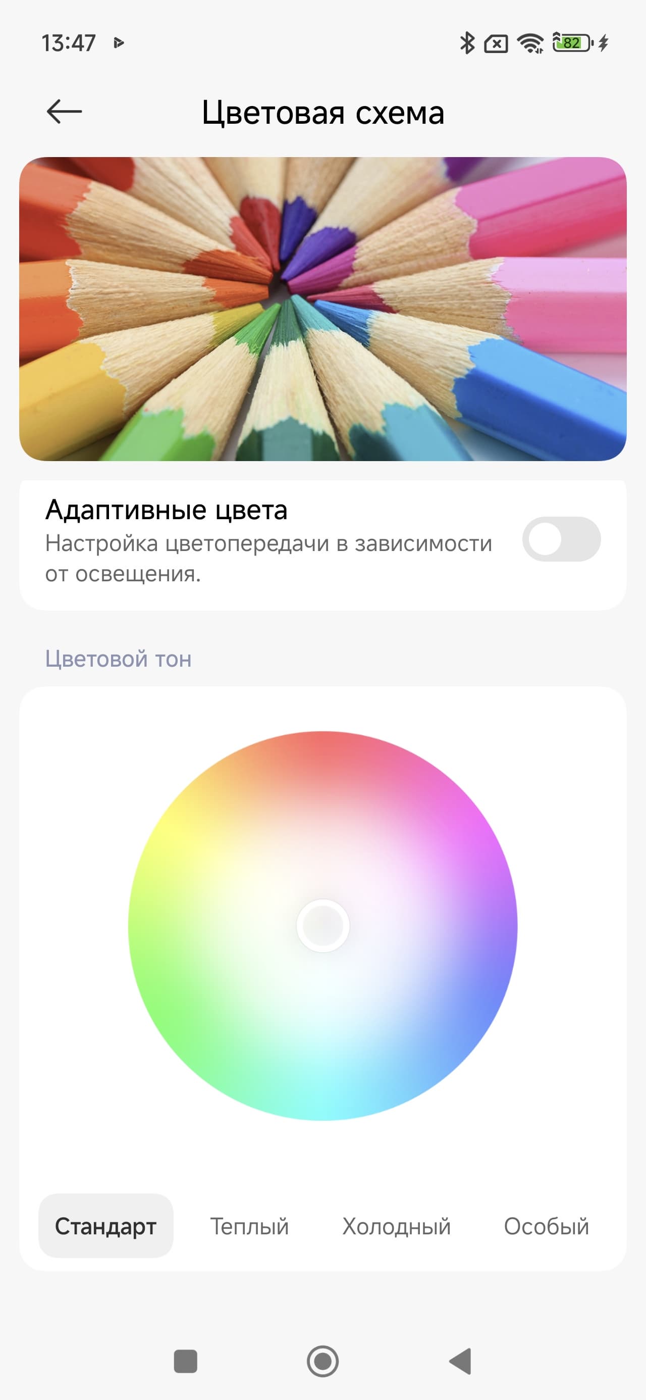 | Функция Адаптивные цвета выключена | 6950 | 2,0 |