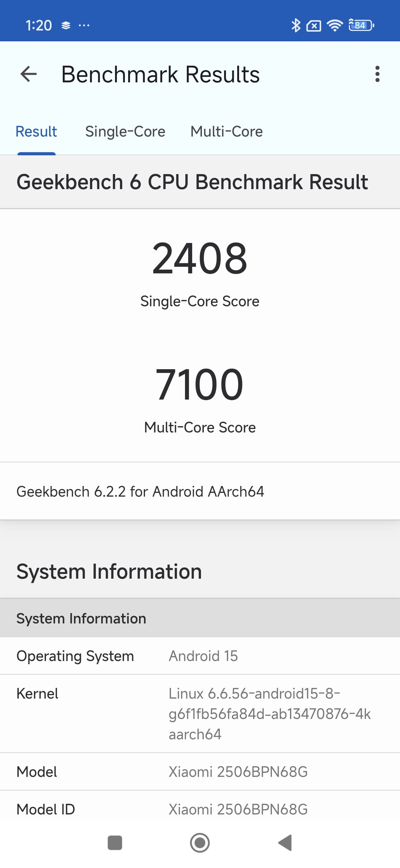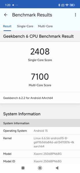 | GeekBench 6 (больше — лучше) | 2408/7100 | 1990/6510 | 1310/4056 | 1275/4266 | 2146/6991 |