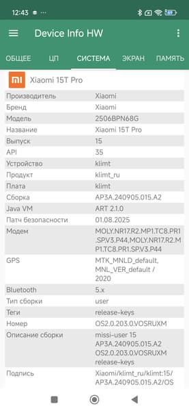 Основные характеристики Xiaomi 15T Pro (модель 2506BPN68G)