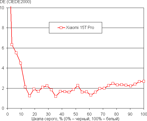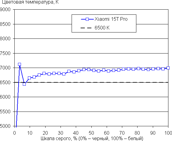 Напомним, что в случае OLED-экранов яркость фрагментов изображения динамично меняется в соответствии с характером выводимого изображения — немного уменьшается для светлых в целом изображений. В итоге полученная зависимость яркости от оттенка (гамма-кривая), скорее всего, не соответствует гамма-кривой статичного изображения, так как измерения проводились при последовательном выводе оттенков серого почти на весь экран.