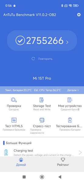 | AnTuTu (v10.x) (больше — лучше) | 2755266 | 1554638 | 1407437 | 1441791 | 1911804 |