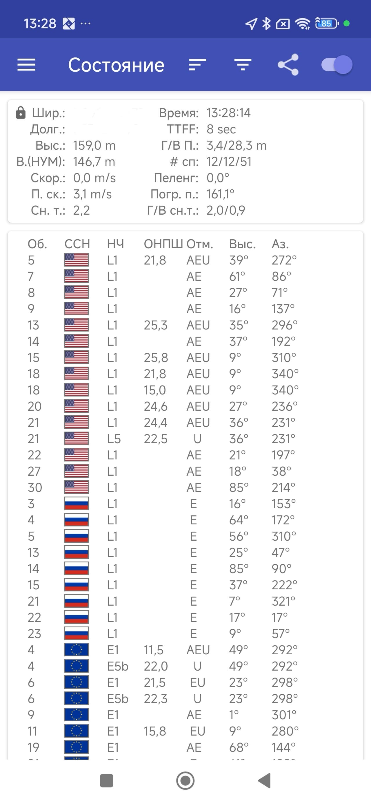 Двухканальный (согласно показаниям специализированного теста) модуль спутниковой навигации работает с GPS (L1+L5), BDS (B1I+B1C+B2a+B2b), Galileo (E1+E5a+E5b), QZSS (L1+L5), NavIC (L5) и Глонасс. Первые спутники при холодном старте обнаруживаются быстро, точность позиционирования не вызывает претензий.