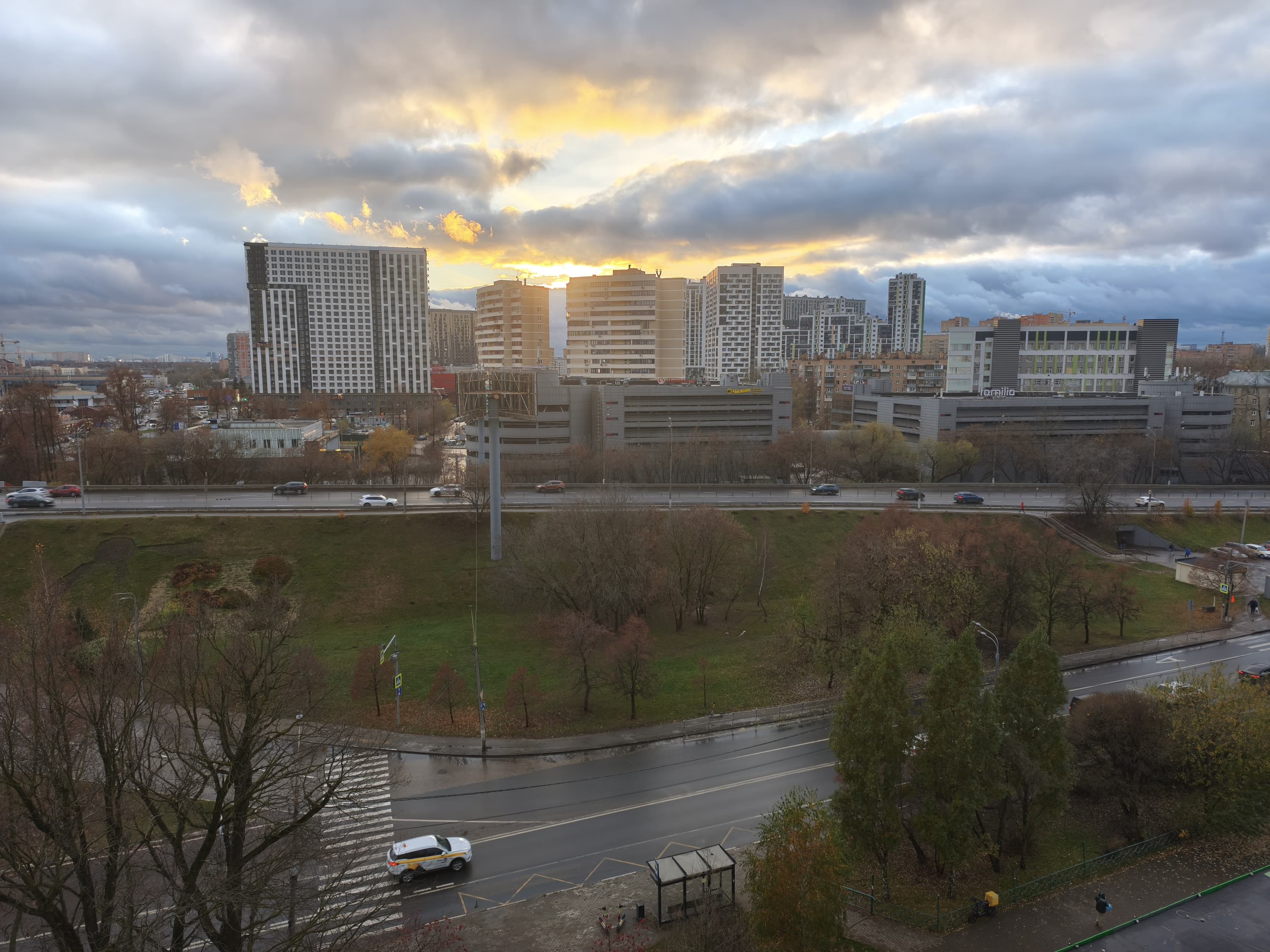 Необходимо периодически подправлять экспозицию, поскольку автоматика излишне задирает ее в условиях пасмурной погоды и снимки выходят белесыми, с выбеленным небом и с большим количеством пересветов. Однако если вручную понизить экспозицию, то картинка становится адекватно темной, не теряя детали в тенях, так что к динамическому диапазону претензий нет. А вот сочности картинке недостает, хотя тут виновата, конечно, и сумрачная осенная погода. Цветовой баланс при этом немного краснит. В целом уровень съемки высокий, хотя и не совсем флагманский.
