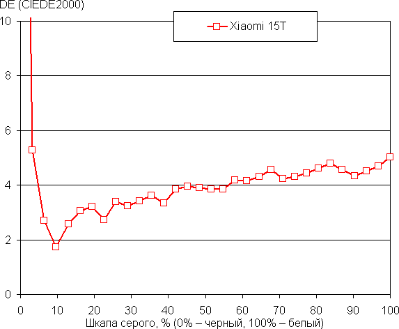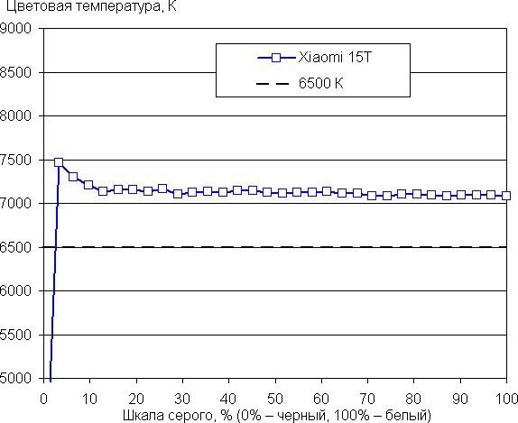 Напомним, что в случае OLED-экранов яркость фрагментов изображения динамично меняется в соответствии с характером выводимого изображения — немного уменьшается для светлых в целом изображений. В итоге полученная зависимость яркости от оттенка (гамма-кривая), скорее всего, не соответствует гамма-кривой статичного изображения, так как измерения проводились при последовательном выводе оттенков серого почти на весь экран.