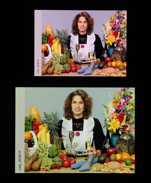Отметим, что на экранах с уширенным цветовым охватом (без соответствующей коррекции) цвета́ обычных изображений, оптимизированных для устройств sRGB, выглядят неестественно насыщенными. Отсюда и рекомендация: в большинстве случаев смотреть кино, фотографии и все естественное лучше при выборе профиля Исходный. При этом, если в изображении прописан отличный от sRGB профиль, то смотреть его лучше с использованием штатной программы Галерея.