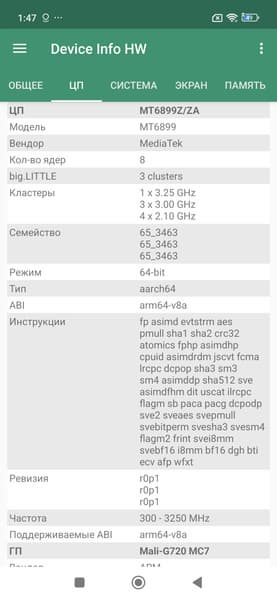 - SoC Mediatek Dimensity 8400 Ultra, 8 процессорных ядер (1×Cortex-A725 @3,25 ГГц + 3×Cortex-A725 @3,0 ГГц + 4×Cortex-A725 @2,1 ГГц)