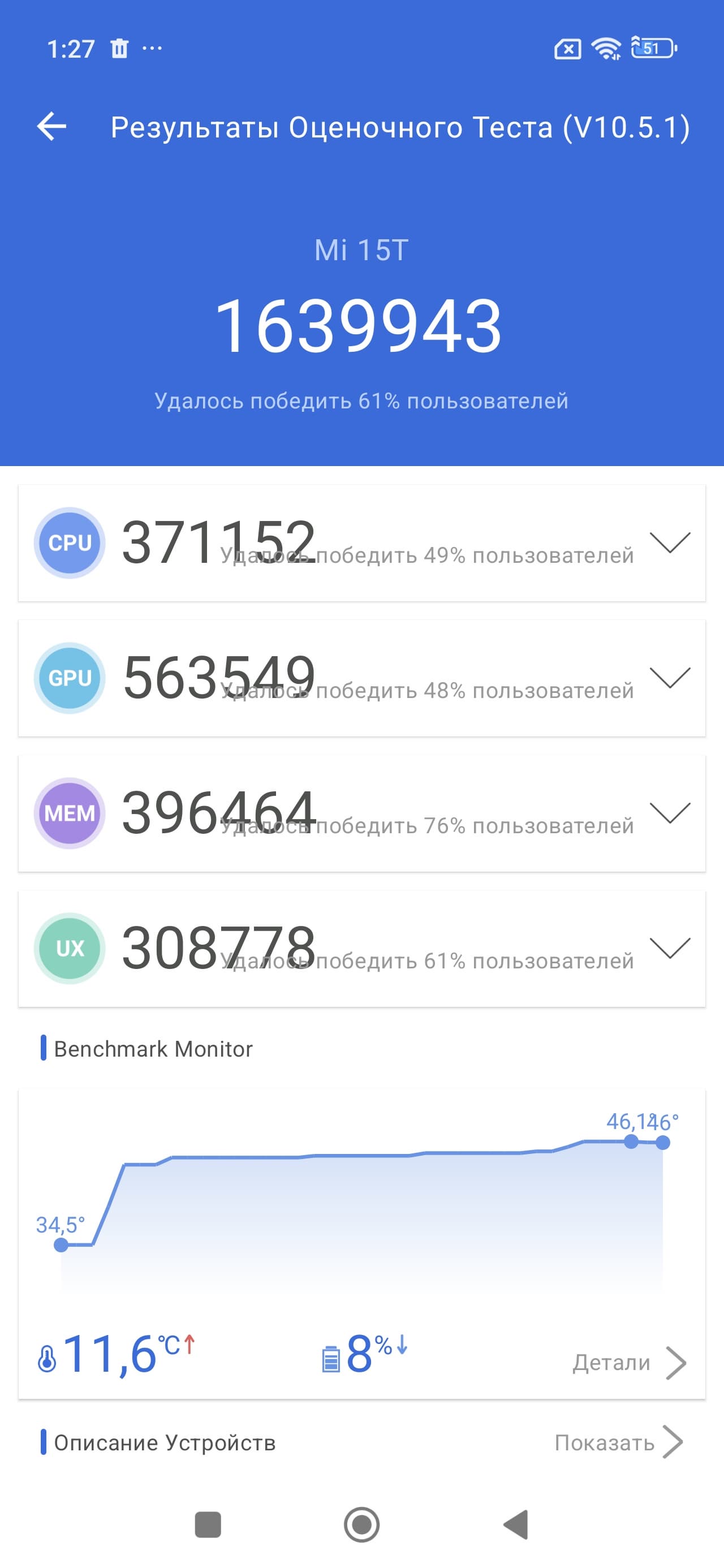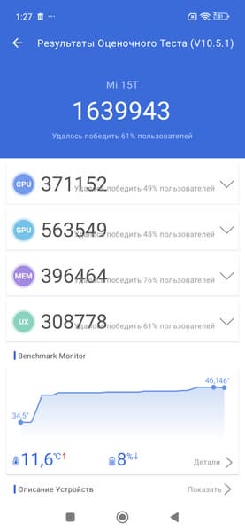 | AnTuTu (v10.x) (больше — лучше) | 1639943 | 1554638 | 2755266 | 1441791 | 1911804 |