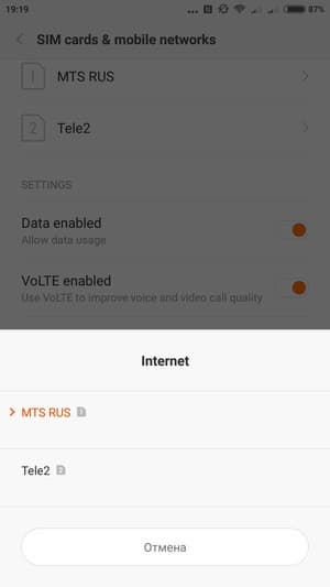 Смартфон обеспечивает работу с двумя SIM-картами. Типично для оболочки MIUI в настройках можно задать определенную SIM-карту для передачи данных и голосовых вызовов, но для отправки SMS-сообщений необходимо каждый раз выбирать желаемую карту.