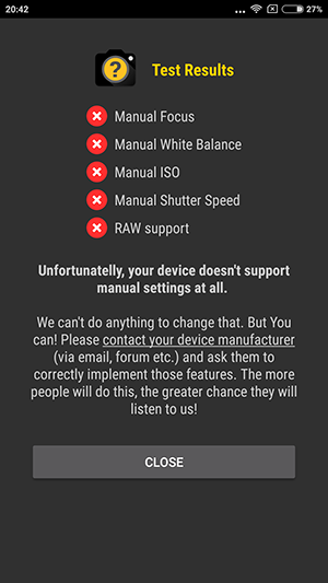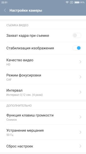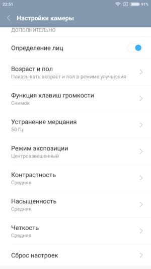 Как обычно, в настройках нет выбора разрешения в конкретных цифрах, можно лишь выставить высокое, среднее или низкое качество, а также подстроить четкость, насыщенность и контрастность — опять же, выбором пресетов. В ручном режиме добавляются настройки ISO (до 3200), выдержки, баланса белого. С помощью Camera2 API нельзя передавать управление камерой сторонним приложениям, возможности сохранения снимков в RAW тоже нет.