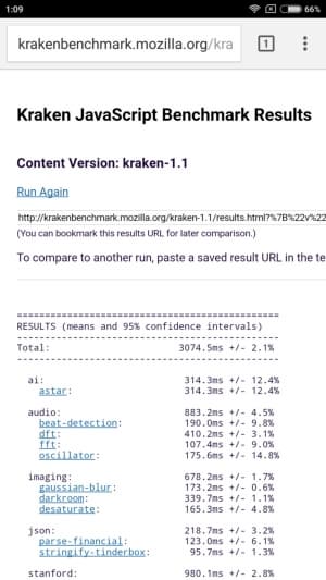 | Mozilla Kraken (мс, меньше — лучше) | 3075 | 2835 | 2946 | 3036 | 3902 | 12403 |