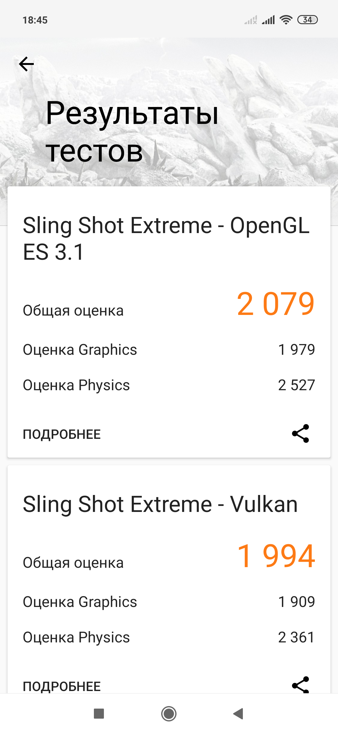 | 3DMark Ice Storm Sling Shot ES 3.1 (больше — лучше) | 2079 | 5433 | 3594 | 1851 | 976 |