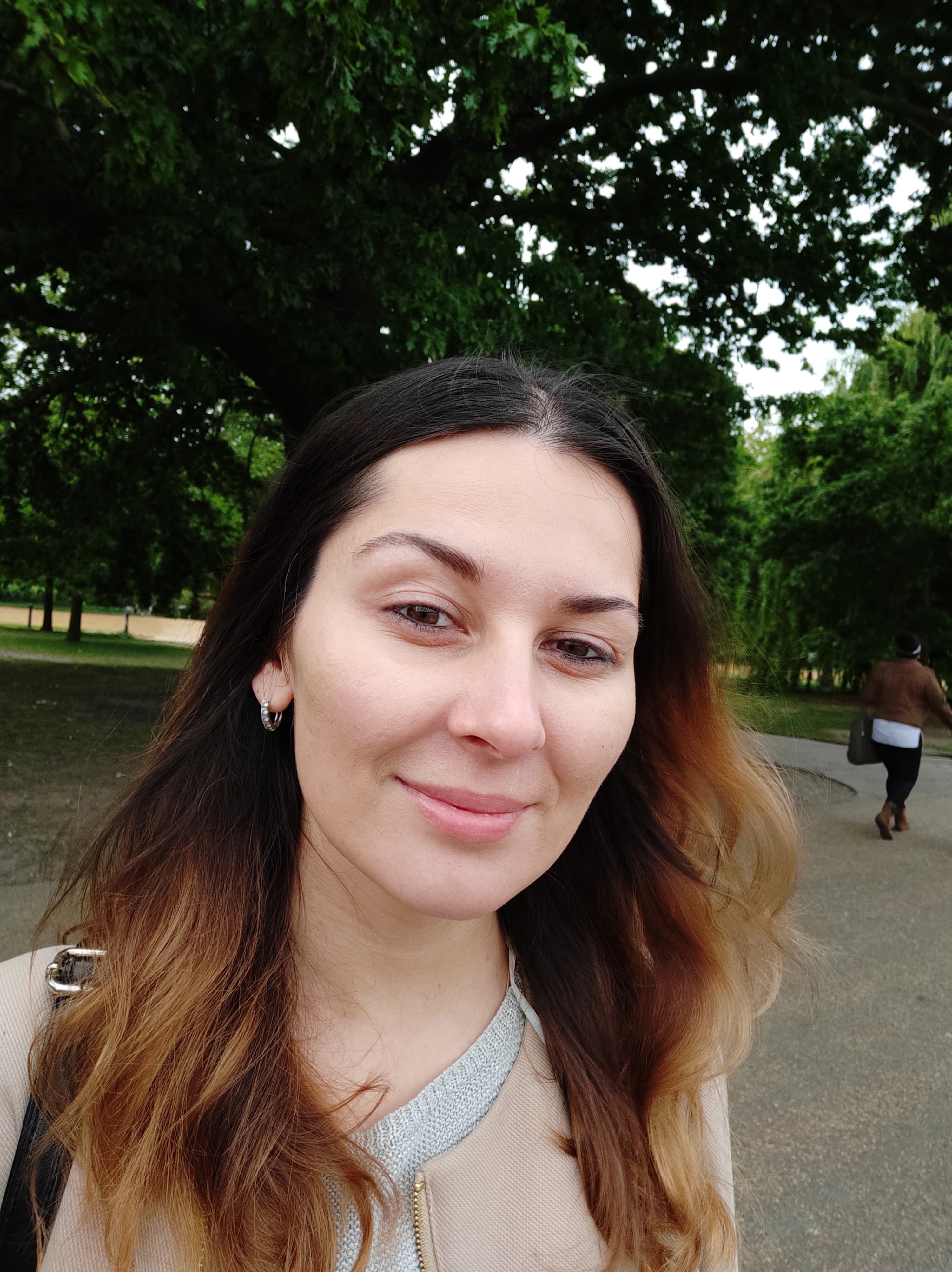 Фронтальная камера оснащена сенсором с разрешением 20 Мп и оптикой с апертурой f/2,0. Камера хорошо передает детали, аккуратно вырезает объект съемки, размывая фон, но всегда заботится в первую очередь о том, чтобы адекватно показать лицо автопортретируемого, поэтому иногда окружающий мир может быть, например, пересвечен — тут не обойтись без ручной подстройки. В целом камера очень достойная, если к ней приноровиться.