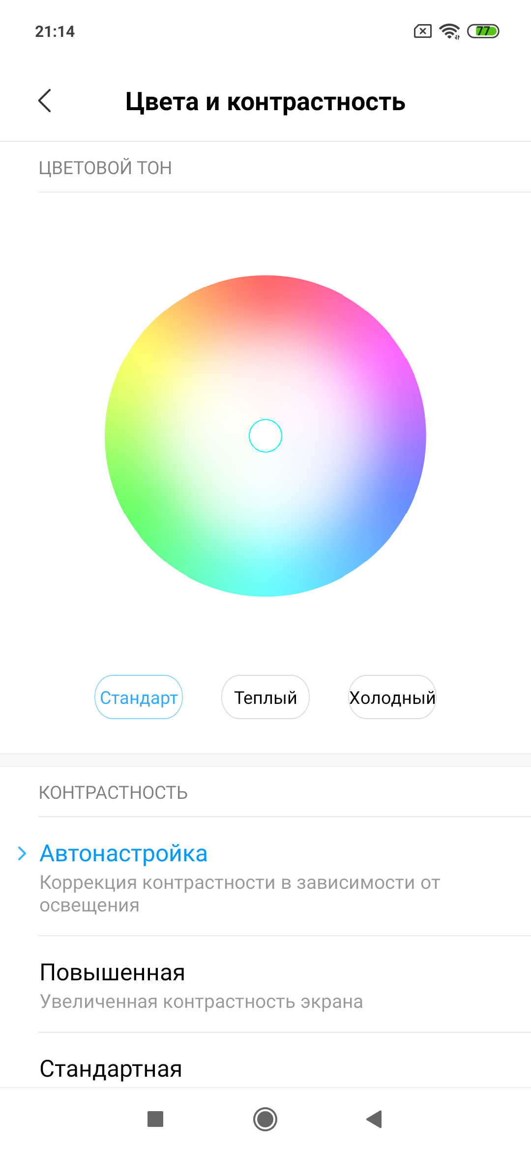 Фотография выше получена для профиля Автонастройка в настройках экрана, всего их три: