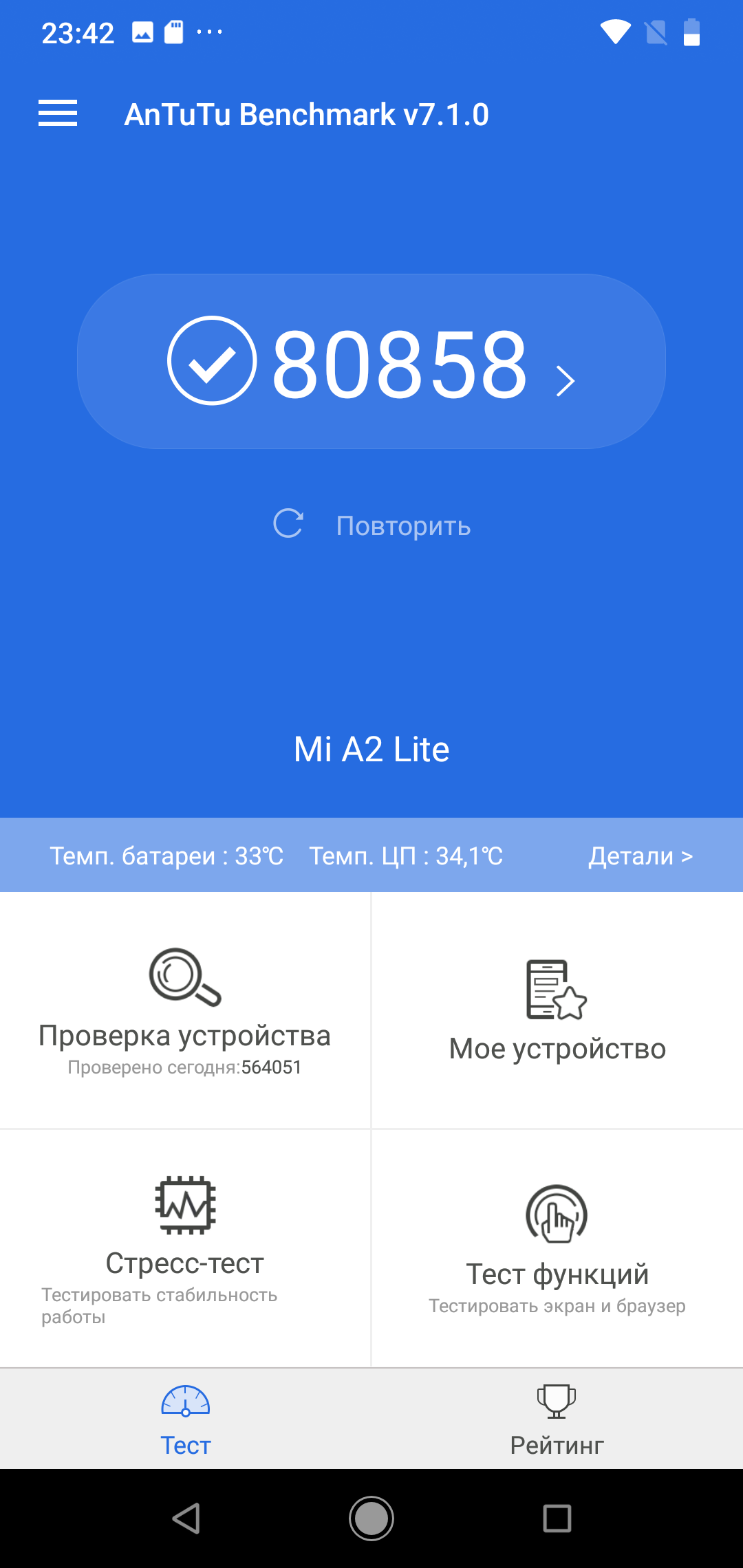| AnTuTu (v7.x) (больше — лучше) | 80858 | 127348 | 116703 | 122891 | 139645 |