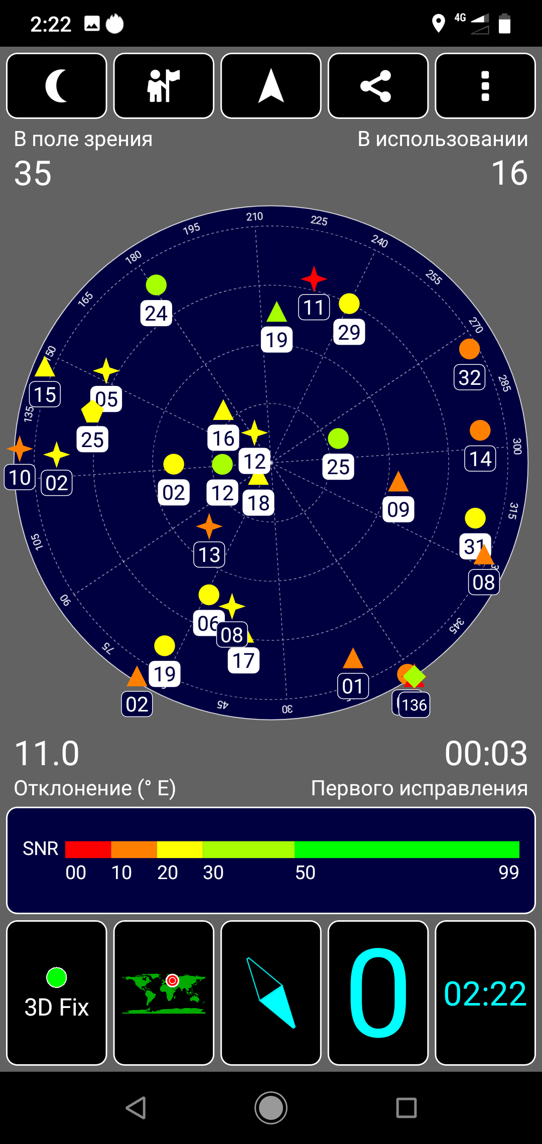 С навигационной частью у смартфона полный порядок. Приемник работает и с GPS (с A-GPS), и с отечественной Глонасс, и с китайской Beidou. Первые спутники даже при холодном старте обнаруживаются быстро, в течение первых секунд, точность позиционирования не вызывает претензий. Магнитный компас, необходимый для навигационных программ, на месте.