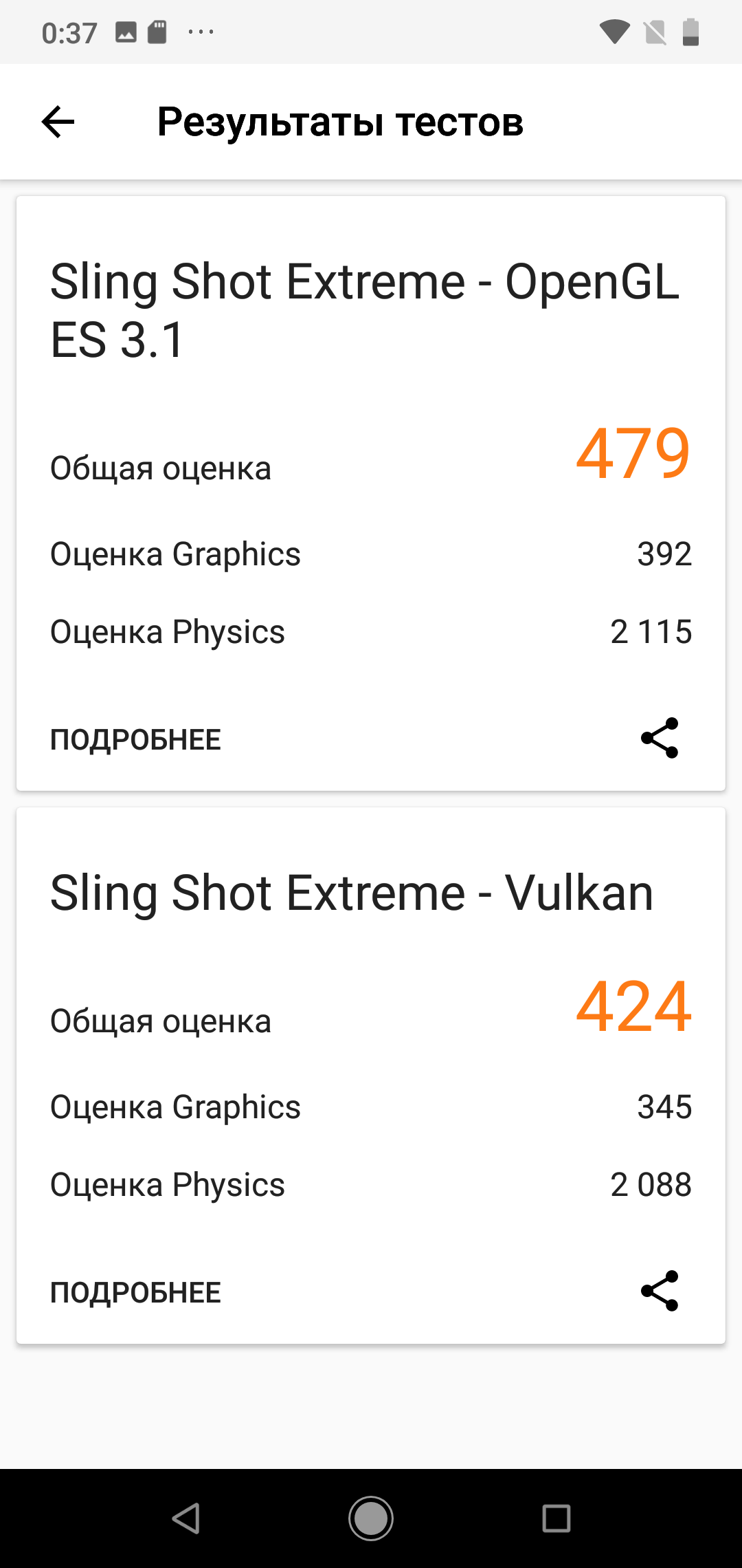 | 3DMark Ice Storm Sling Shot ES 3.1 (больше — лучше) | 479 | 1277 | 951 | 739 | 942 |