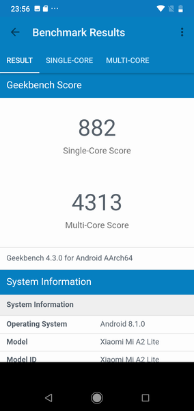 Xiaomi Mi A2 Lite функционирует на SoC Qualcomm Snapdragon 625. В конфигурацию этой 14-нанометровой SoC входит восьмиядерный процессор, содержащий процессорные ядра ARM Cortex-A53 с частотой до 2 ГГц. За обработку графики отвечает GPU Adreno 506. Объем оперативной памяти в случае нашего смартфона составлял 3 ГБ, а встроенной флэш-памяти — 32 ГБ; есть и другие модификации. Карты памяти поддерживаются, есть даже возможность отформатировать карточку в качестве внутренней памяти с возможностью установки приложений. Есть возможность OTG-подключения внешних флэш-накопителей.
