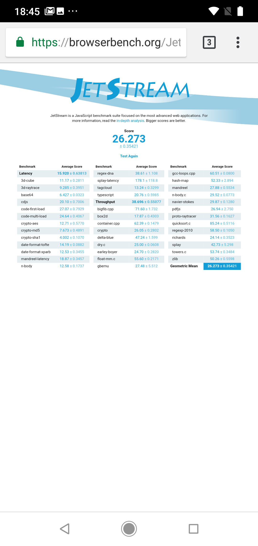 | JetStream (больше — лучше) | 26 | 52 | 42 | 49 | 38 |