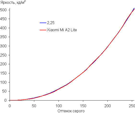 Цвета на экране Xiaomi Mi A2 Lite имеют насыщенность чуть выше естественной (кожа излишне красноватая), цветовой баланс у Nexus 7 и у тестируемого экрана немного различается.