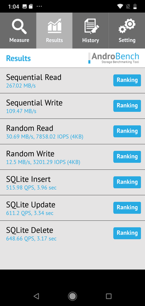 Результаты теста AndroBench на скорость работы с памятью: